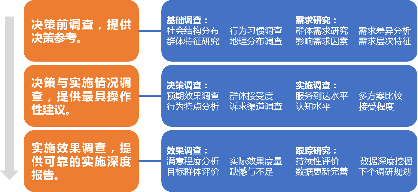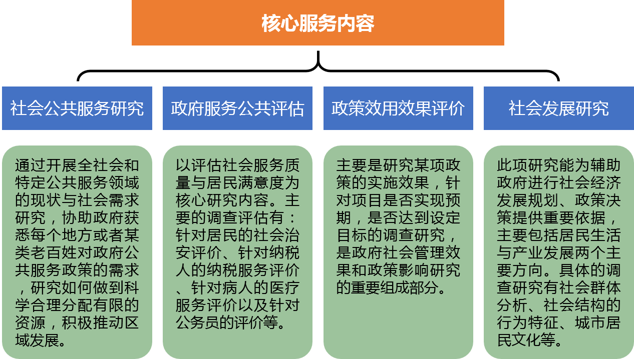 目前我國(guó)各級(jí)政府在追求發(fā)展效率的同時(shí),也在積極推動(dòng)和創(chuàng)建和諧社會(huì),如何掌握社會(huì)需求,提供合理服務(wù),降低社會(huì)公共事務(wù)成本,取得工作好評(píng)對(duì)于決策和執(zhí)行層都非常重要。另外如何科學(xué)、合理、客觀地由社會(huì)對(duì)工作做出真實(shí)評(píng)估,對(duì)于總結(jié)特點(diǎn)、發(fā)揚(yáng)優(yōu)勢(shì)、彌補(bǔ)不足更為重要。華夏經(jīng)緯在政府/協(xié)會(huì)等領(lǐng)域擁有豐富的資料、最新的政府統(tǒng)計(jì)信息及相關(guān)研究經(jīng)驗(yàn),并受到了各級(jí)政府和職能部門(mén)的充分肯定。
